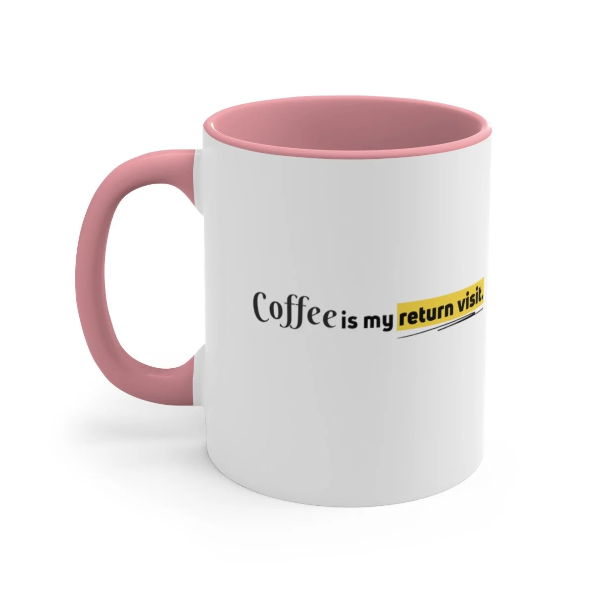 Add some color to your routine with this two-tone, custom accent coffee mug. This 11oz mug features an accented C-Handle that is comfortable to use, as well as an accented interior to add more contrast and character. With this